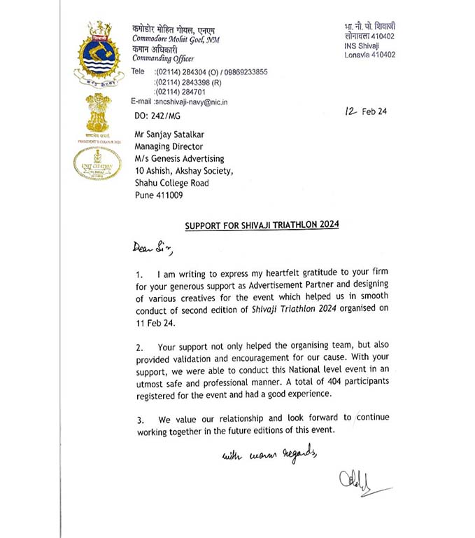 In a gesture of appreciation, the Commanding Officer presented a special letter acknowledging Genesis’s exceptional contribution. Furthermore, INS Shivaji expressed a commitment to an ongoing partnership, inviting Team Genesis to be an integral part of all future editions of the Shivaji Triathlon.